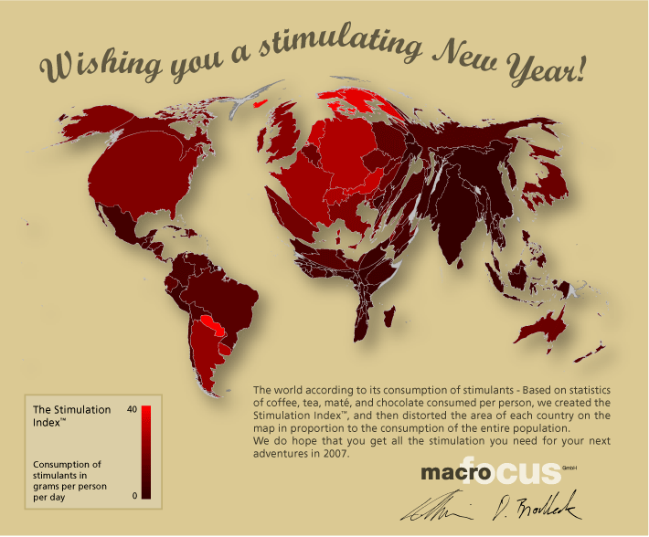 Country | Cocoa beans | Tea and Maté | Coffee | Cocoa beans per capita | Tea and Maté per capita | Coffee per capita | Stimulation Index™ |