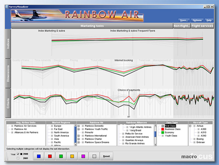 Read more about SurveyVisualizer in "Visualization of Large-Scale Customer Satisfaction Surveys Using a Parallel Coordinate Tree"